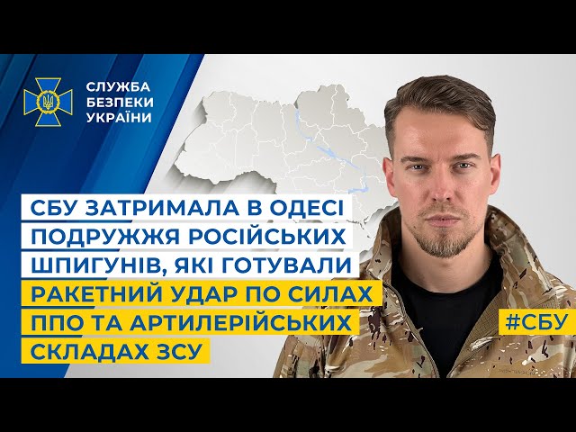 СБУ затримала в Одесі подружжя шпигунів Росії, які готували ракетні удари по ППО та артилерійських складах українських Збройних Сил. Про це повідомляє пресслужба СБУ.
