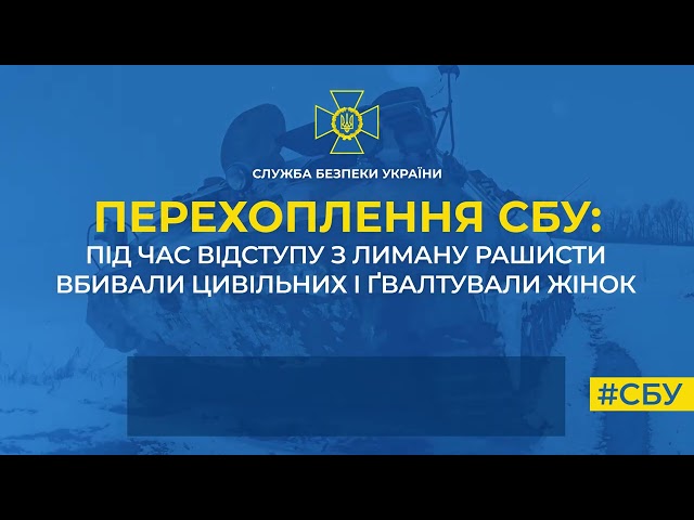 Служба безпеки України отримала чергове підтвердження воєнних злочинів Росії. При відступі з Лиману російські окупанти вбивали цивільних та ґвалтували жінок. Про це свідчить перехоплена телефонна розмова окупантів, повідомляє пресслужба СБУ.