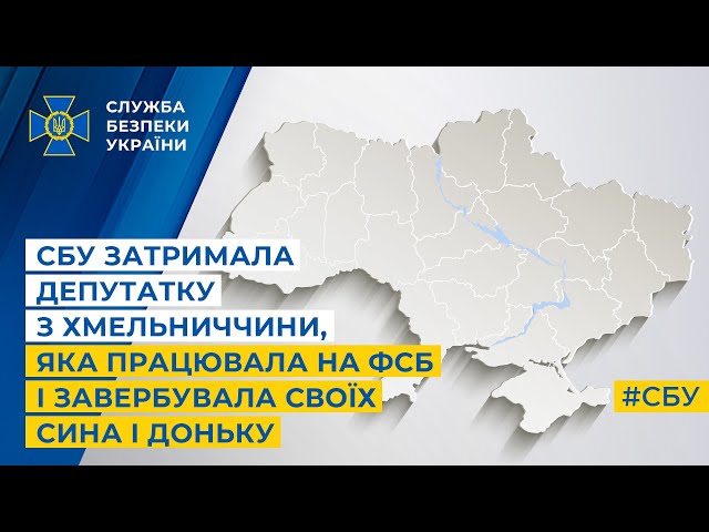 СБУ затримала депутатку з Хмельниччини, яка працювала на ФСБ Росії і завербувала до злочинної діяльності своїх 42-річного сина і 37-річну доньку. За вказівкою російської спецслужби вони намагалися виявити пункти базування та маршрути руху мобільних вогневих груп ППО, які обороняють регіон. Про це повідомляє пресслужба СБУ.