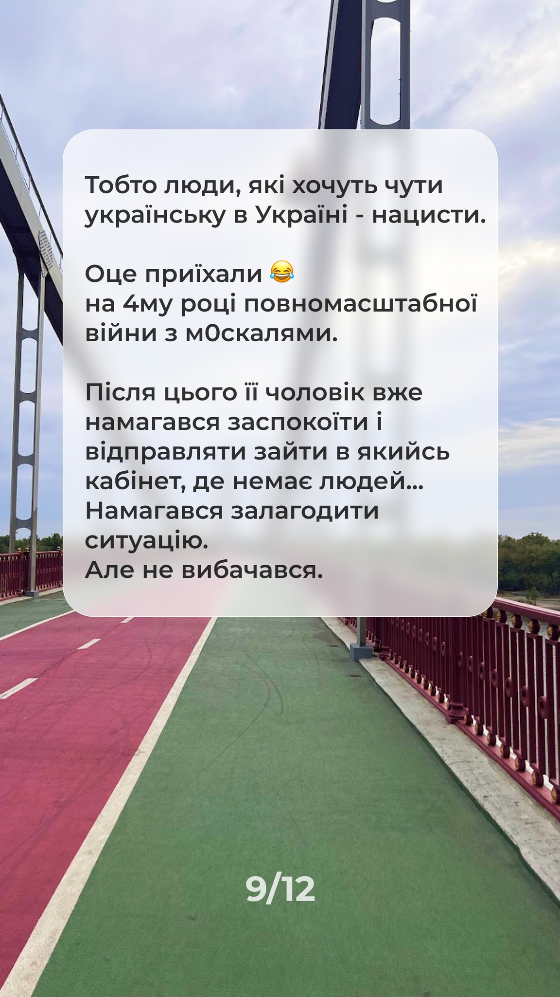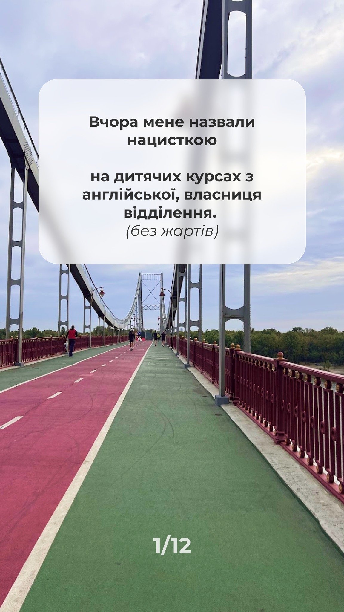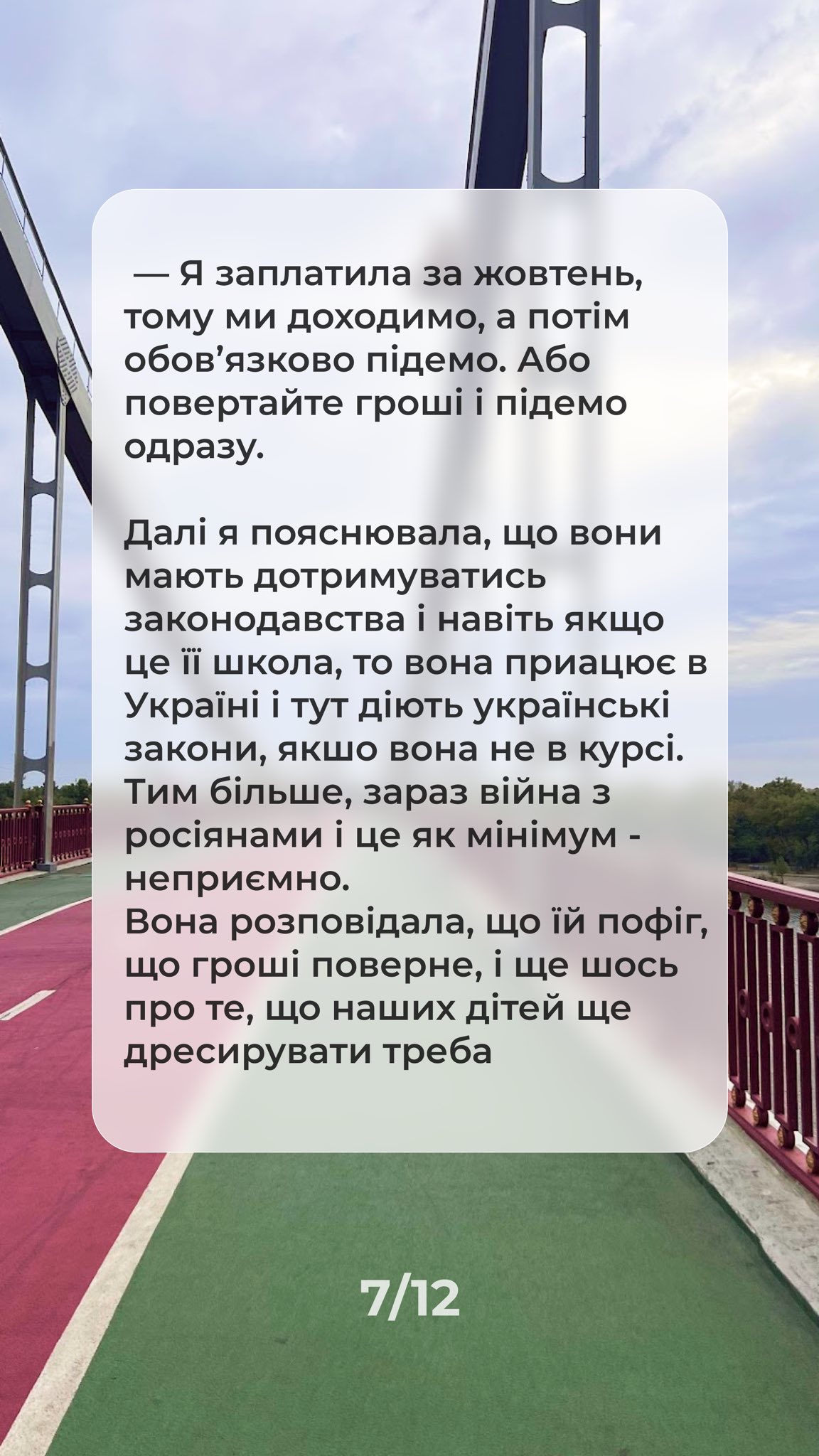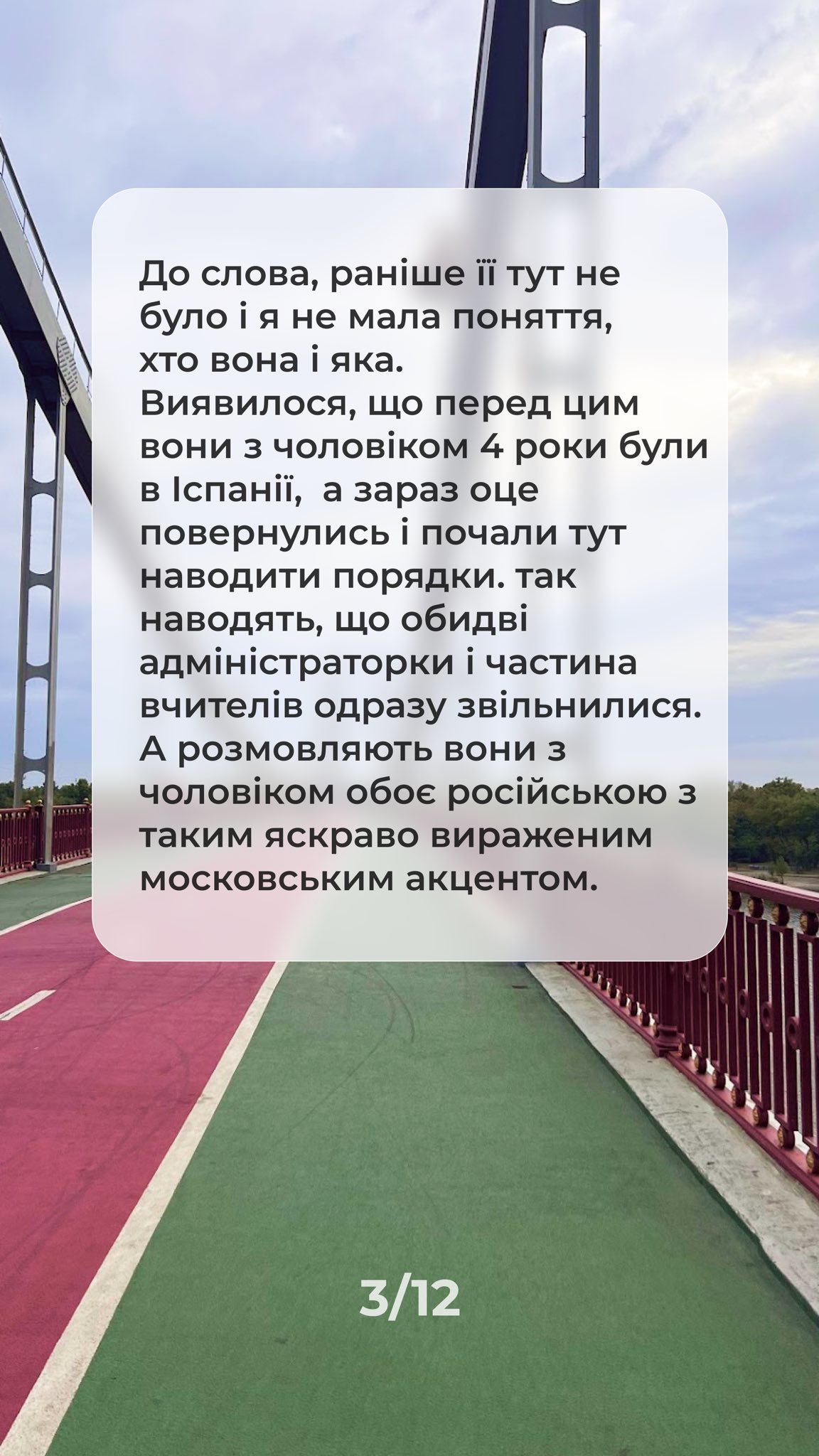 Декілька днів Олена Корусь – мама дитини, що навчається у школі – написала, що директорка спілкується з дітьми «російської мовою з московським акцентом» і що у відповідь на прохання розмовляти з учнями українською обізвала батьків «фашистами» і «нациками». Корусь наголосила, що була змушена звернутися до керівництва Helen Doron.