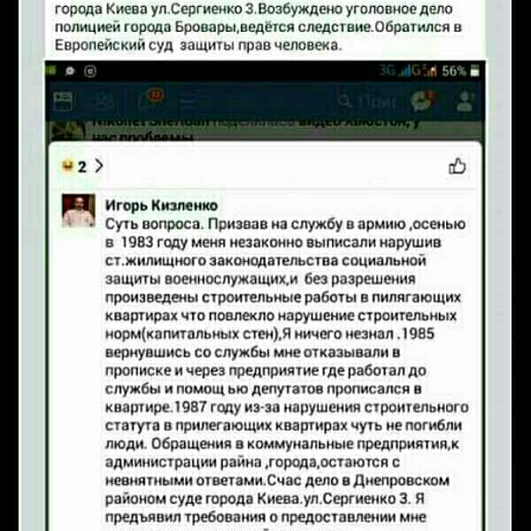 Ще один пост, що повторюється на сторінці Кізленка, про те, що його незаконно позбавили права на житло. Скріншот зі сторінки Ігоря Кізленка у Фейсбук.