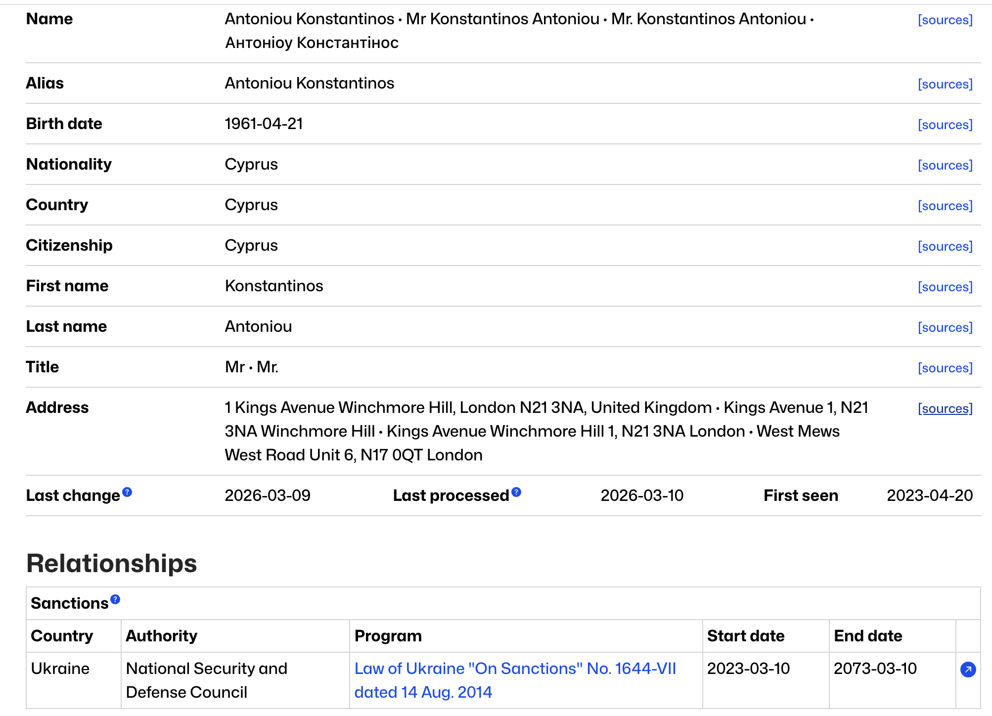 Також раніше ЗМІ підкреслювали, що під санкціями, крім Фукса, також перебуває колишній формальний бенефіціарний власник низки фірм з групи “Інвестохіллс” у минулому – кіпріот Антоніу Константінос (Antoniou Konstantinos).