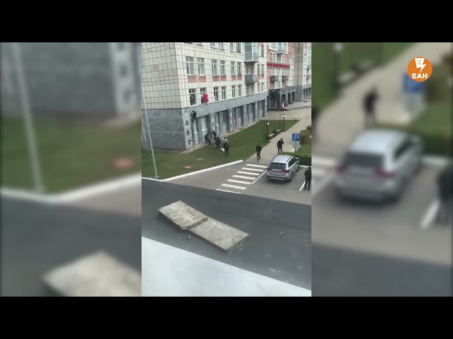 На опублікованих в мережі відео з камери відеоспостереження видно, що Тимур Бекмансуров підходив до корпусу, коли біля входу стояло багато студентів. Почувши постріли і побачивши озброєну людину, вони втекли всередину корпусу.