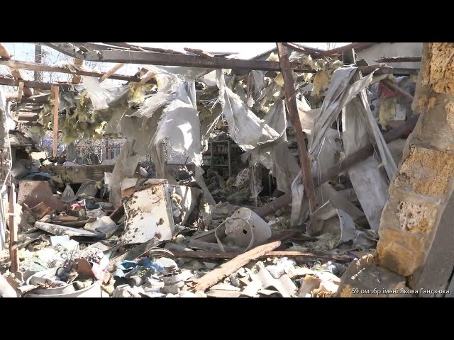 На кадрах немає вцілілих будівель. Приватні та багатоквартирні будинки залишилися без дахів, вікон, дверей. Деякі просто стали купами цегли та арматури.