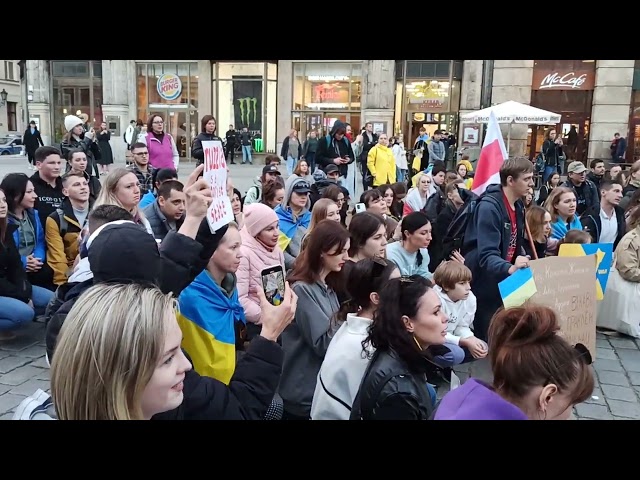 До людей приєднались місцеві жителі. Всі вони прийшли з синьо-жовтими прапорами та плакатами та скандували під час акції лозунги «росія - терористична держава», «Зупиніть росію, зупиніть війну», «Озброюйте Україну», «ППО для України» тощо.