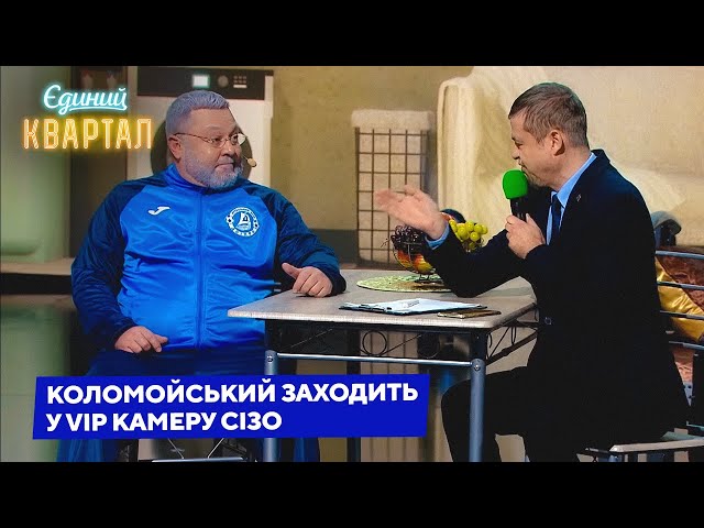 Коміки зі студії "Квартал 95" в останньому випуску "Единого квартала" показали номер з Ігорем Коломойським у СІЗО. У номері "олігарх" заходить в VIP-камеру та починає її оглядати, коментуючи побачене.