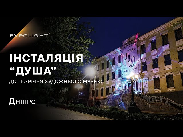 Фасад художнього музею у Дніпрі на честь 110-річчя підсвітили інсталяцією «Душа». Автори артпроєкту таким чином хотіли звернути увагу дніпрян та гостей міста на колекції, які там представлені.