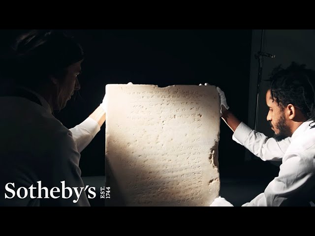 Рідкісна мармурова плита з давньоєврейською версією Десяти заповідей буде виставлена на аукціон Sotheby’s у Нью-Йорку 18 грудня. Артефакт виставлять на публічний огляд у Sotheby’s New York з 5 грудня. Про це йдеться на сайті Sotheby’s.