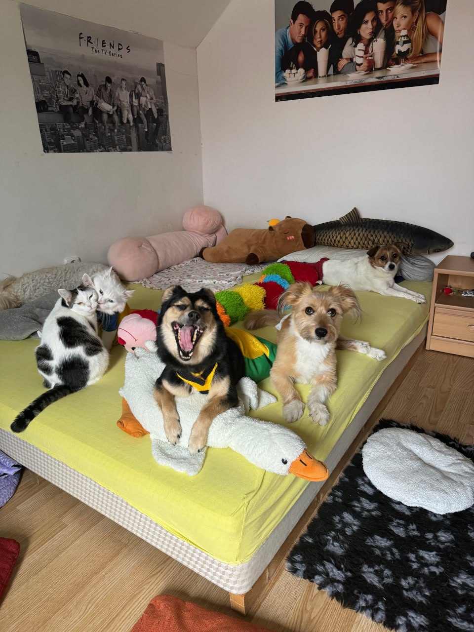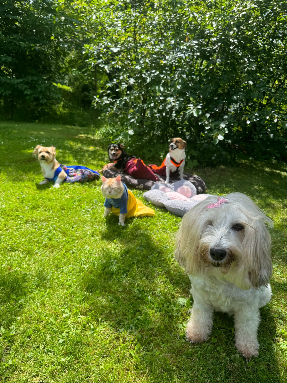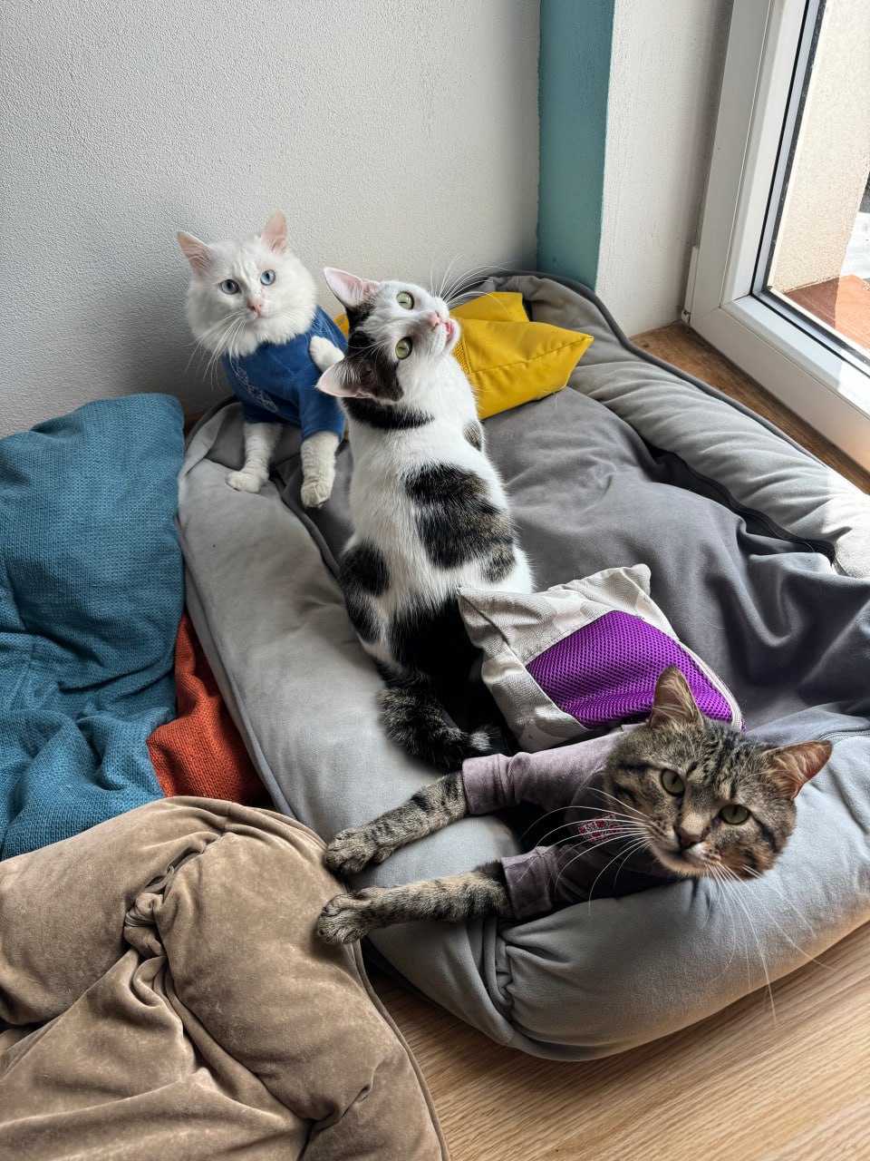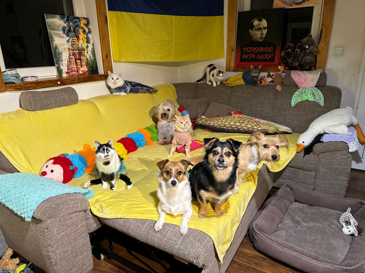 Начебто всі тварини здорові, але зі своїми проблемами. Живемо всі під одним дахом, спимо в одній кімнаті.