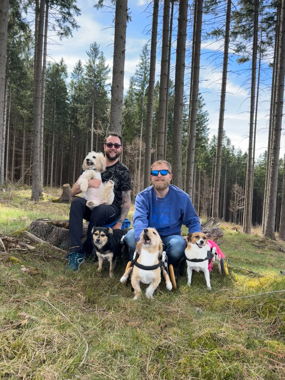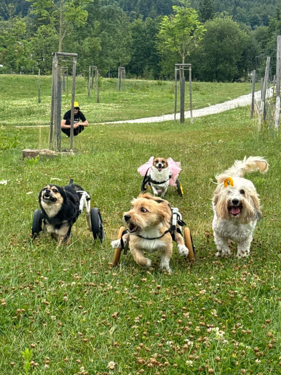 А коли ми одягаємо собакам коляски, у ці моменти вони найщасливіші! Я дуже тішуся, що вони можуть так бігати. Заради цього ми й намагаємось все робити.