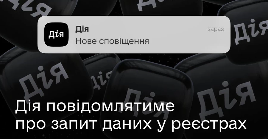 Додаток "Дія" надсилатиме українцям повідомлення, якщо їх дані переглянуть у реєстрах. Також буде зазначено причину перевірок, повідомили у Міністерстві цифрової трансформації України у Telegram.