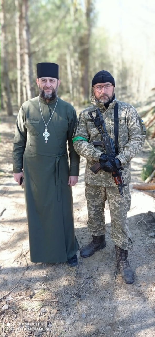 Бойовий медик Олександр Ходаков із ще одним капеланом 104 ОБР ТРо Тарасом Климовичем. Фото надане Олександром Ходаковим