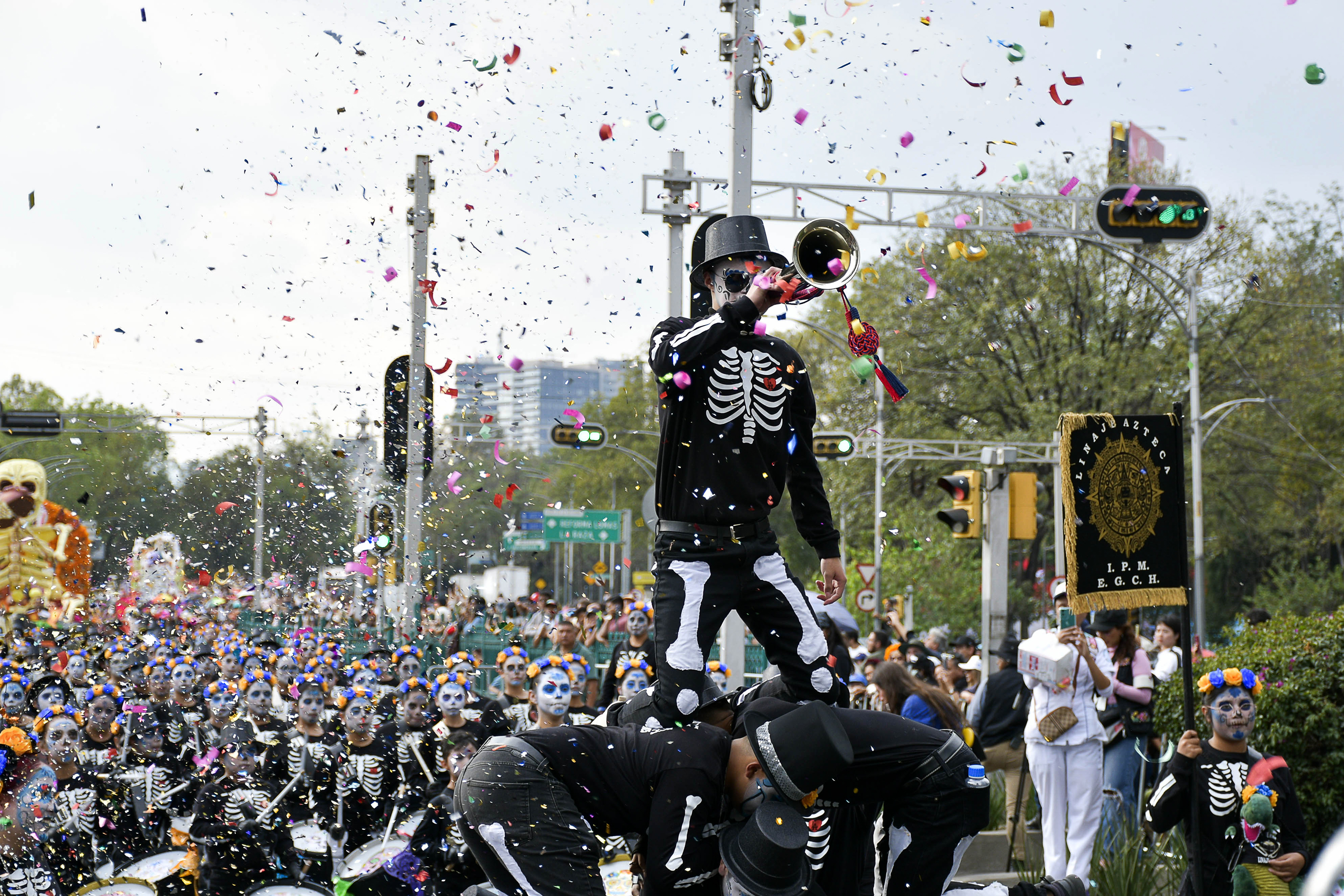 Тисячі мешканців і туристів у кольорових костюмах та з традиційним черепоподібним гримом заповнили вулиці Мехіко під час щорічного параду Катріни, який відбувається напередодні Дня мертвих. У 2025 році це свято відзначатимуть 2 листопада.