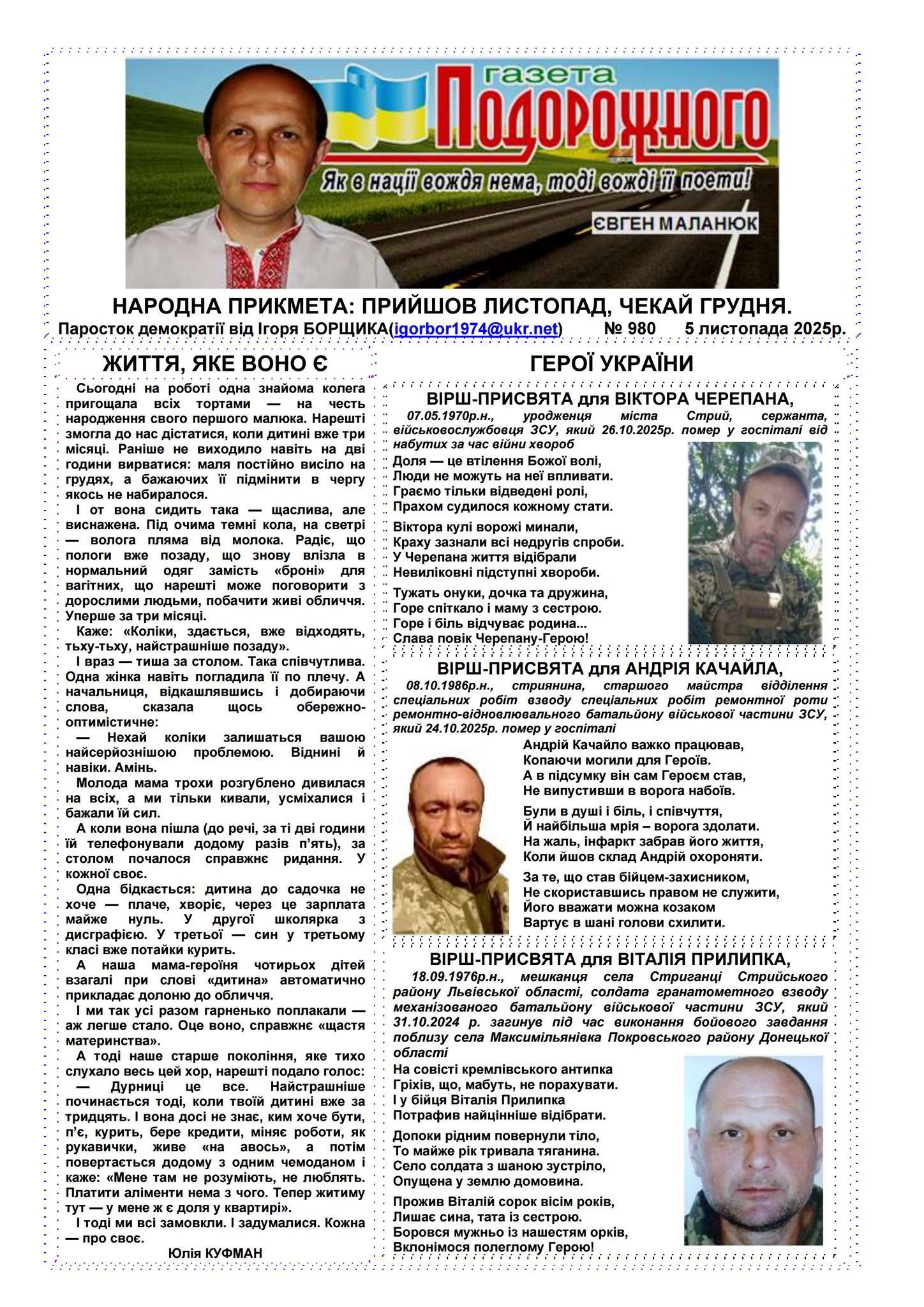 У "Газеті подорожнього", яка виходить у місті Стрий Львівської області, друкують вірші-присвяти полеглим військовослужбовцям. Окрім того, їх вручають родичам загиблих під час похорону. Оскільки написані вони у дещо гумористичному стилі, це обурює самих родичів військових. Однак місцева влада на їх скарги не реагує. Про це у Facebook написала місцева журналістка Дарія Гірна.