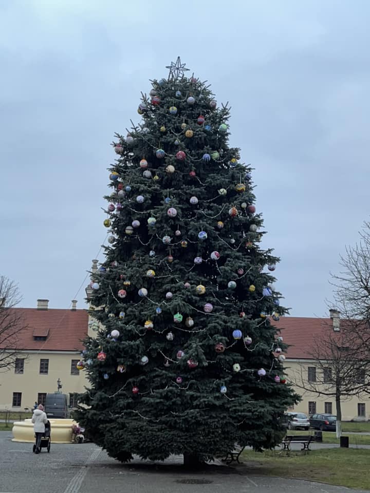 Головну різдвяну ялинку Жовкви вже третій рік поспіль прикрашатимуть кульками, вишитими Галиною Ковальською. Фото: ФБ Галя Ковальська