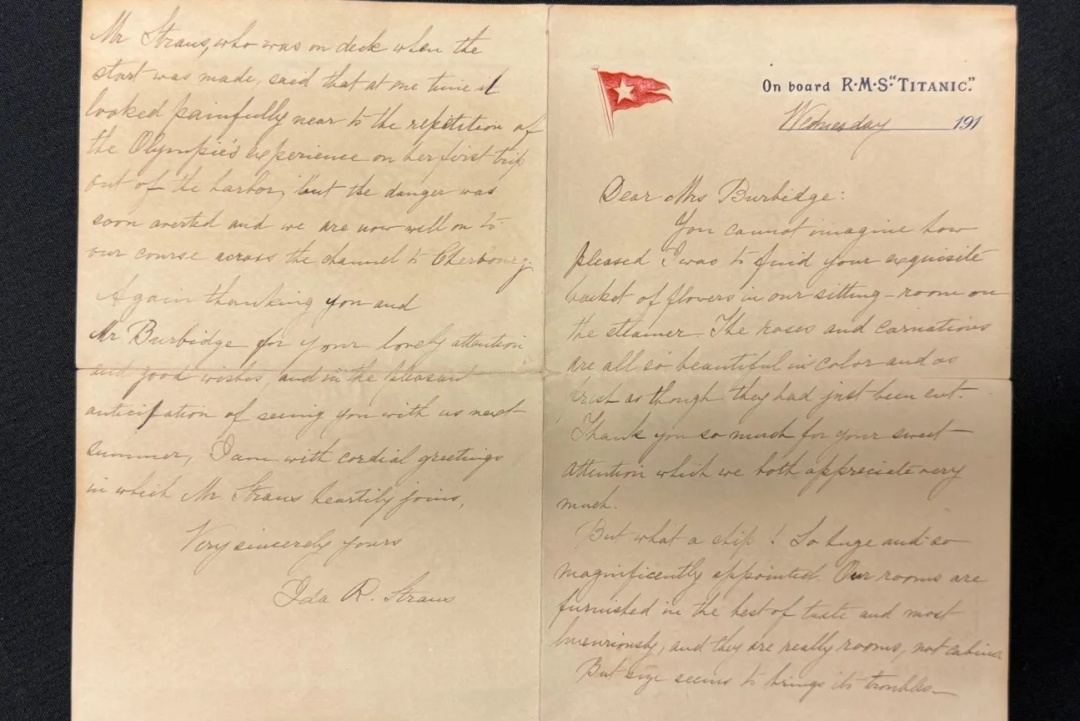 Годинник буде проданий разом із рідкісним листом, який Іда написала на борту лайнера, описуючи його розкіш. Лист має поштовий штемпель TransAtlantic 7, що означає, що він був франкований на борту в поштовому відділенні "Титаніка", а потім відправлений разом з іншою поштою в Квінстаун, Ірландія. Обидва предмети будуть виставлені на аукціон компанією Henry Aldridge & Son у Вілтширі, а вартість листа оцінюється в 150 тисяч фунтів стерлінгів.
