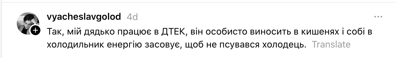Треба провести обшуки у тещі директора ДТЕК. Впевнений, в неї на дачі знайдуть коробки з-під взуття, догори заповнені електроенергією. (с) nolf_2