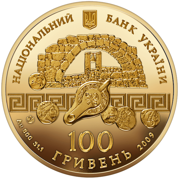 У нижній частині зазначено номінал - 100 гривень. Карбування монети із золота (проба Au 900) було здійснене у 2009 році. Вага чистого золота - 31,1 г. Загальний обсяг випуску обмежили тиражем у 3 000 екземплярів.