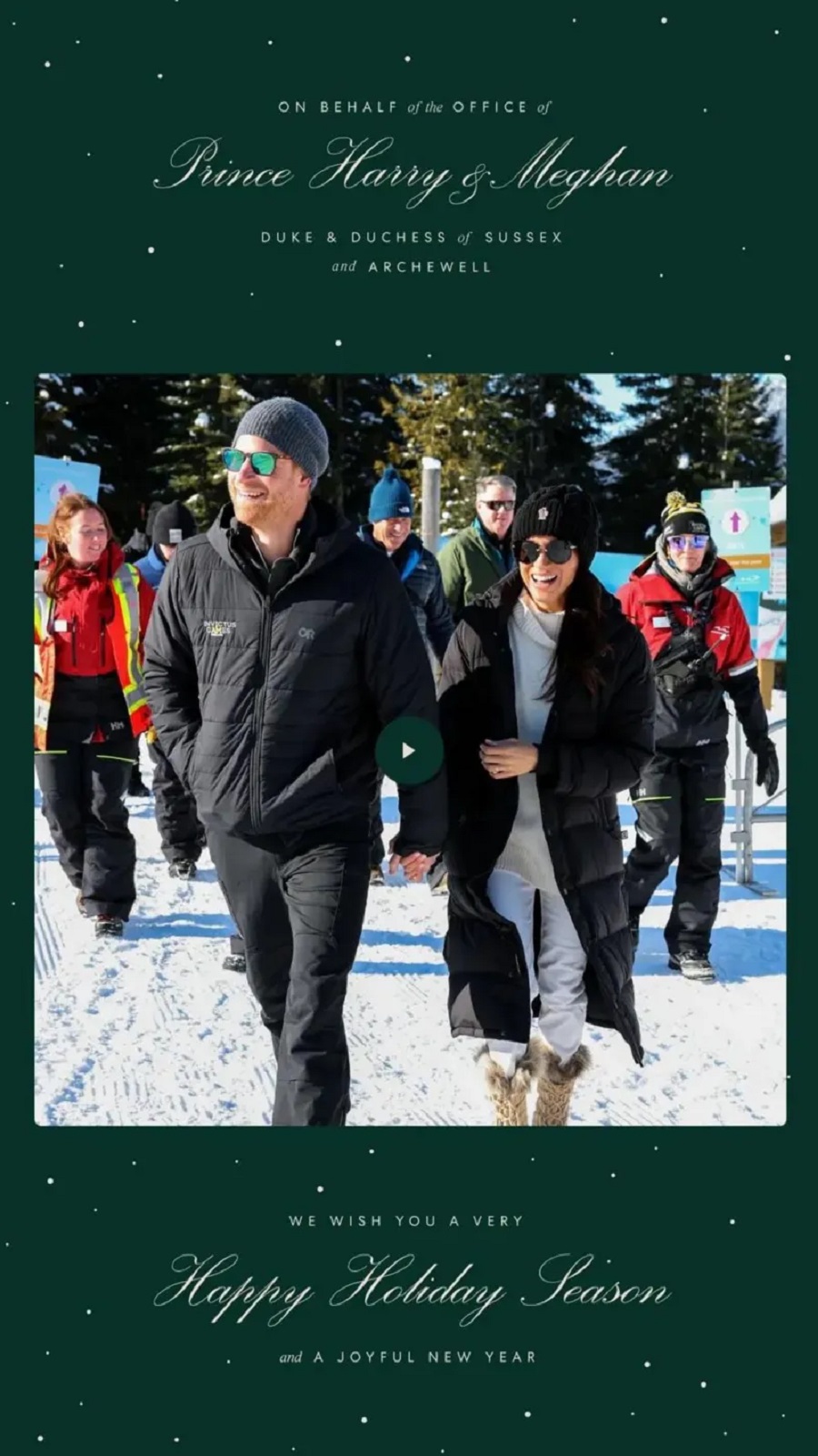 На різдвяній листівці принц Гаррі і Меган тримаються за руки — точніше, на листівці з написом «Щасливих свят!». На відміну від інших, вони правильно підібрали сезон, знявши святковий сніг на фотографії з Ігор непокорених у Канаді у лютому.
