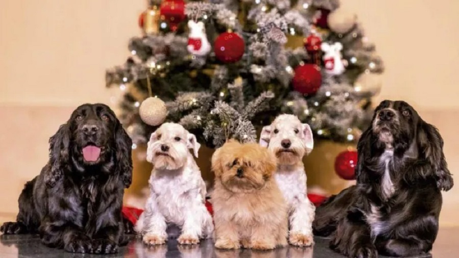 Хуан Карлос, колишній король Іспанії, запропонував листівку із зображенням цуценят. П'ять маленьких собачок перед штучною ялинкою, що велично вишикувались у класичному королівському портретному ряду.