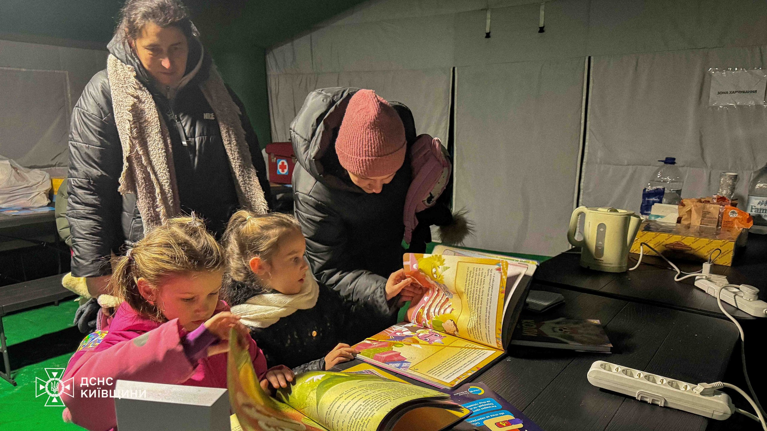 Якщо дитина замерзла на вулиці - зайдіть разом з нею в "пункт незламності" - там тепло і є гарячий чай. Фото: ДСНС Києва