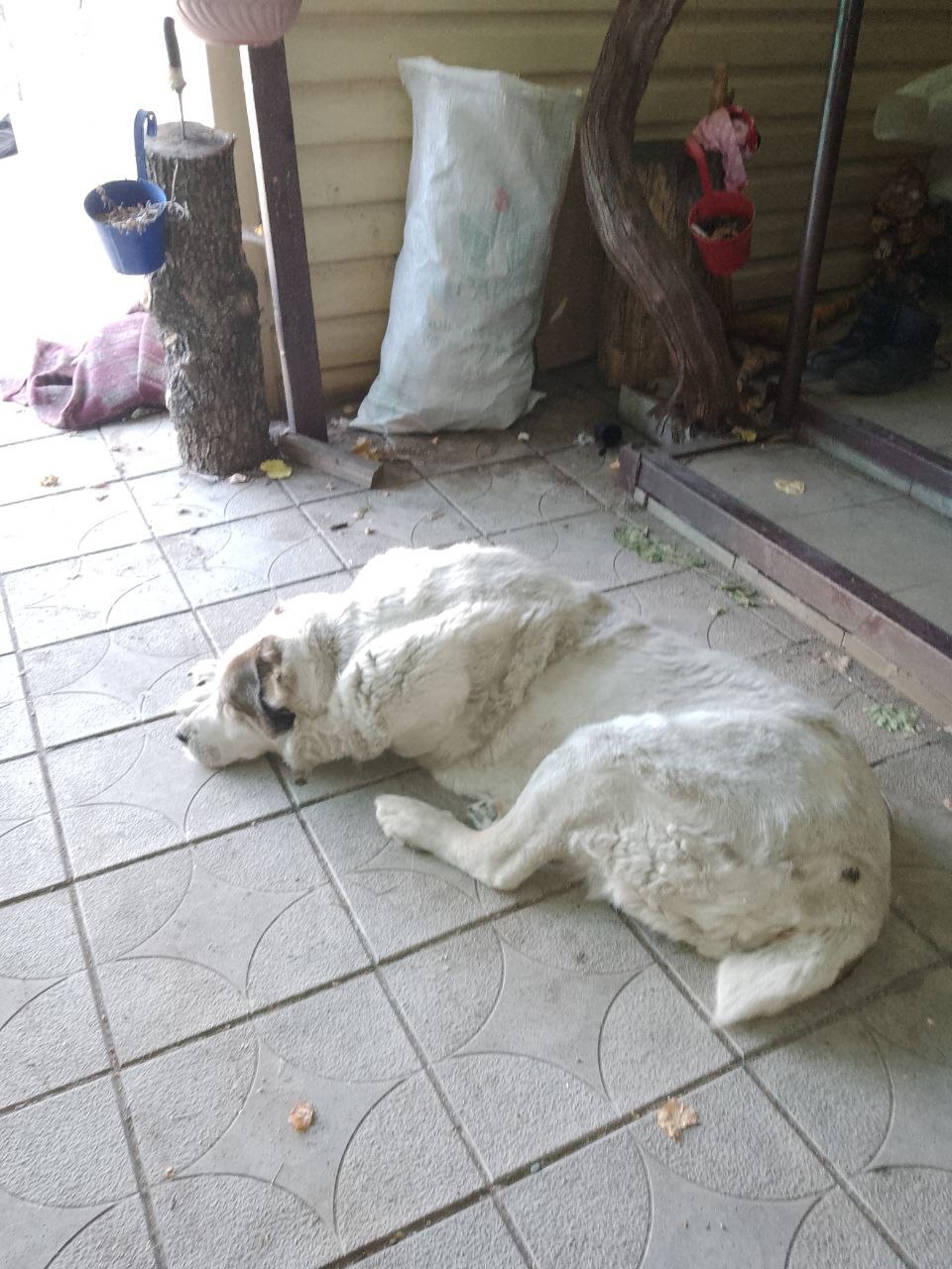 - Справа була у Карлівці (село на Донеччині). Хазяї алабая поїхали, а його кинули одного, закривши у вуличному вольєрі. Раз на три дні чи раз на тиждень йому приносили воду, але з вольєру він не виходив. А навколо тоді ще йшли артилерійські обстріли, літали літаки... Собака був поранений і контужений. Стан у нього був важкий. Пазурі відросли так, що він майже не міг ходити. По плитці пересувався з характерним звуком – цок-цок-цок.