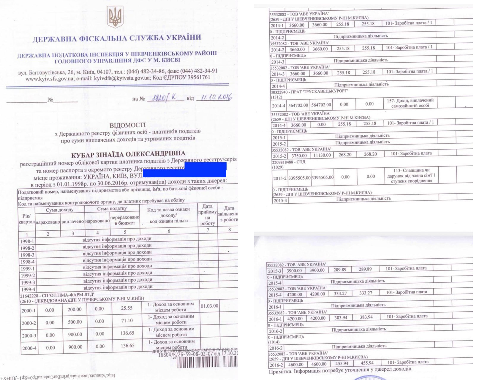Тепер повернемося до питання фінансової незалежності художниці, яка «ніколи нікому не платила, а лише заробляла». Як видно із податкових декларацій Зінаїди Кубар, копії яких є у розпорядженні редакції, за 2000-2016 роки включно вона мала доволі скромні офіційні заробітки.