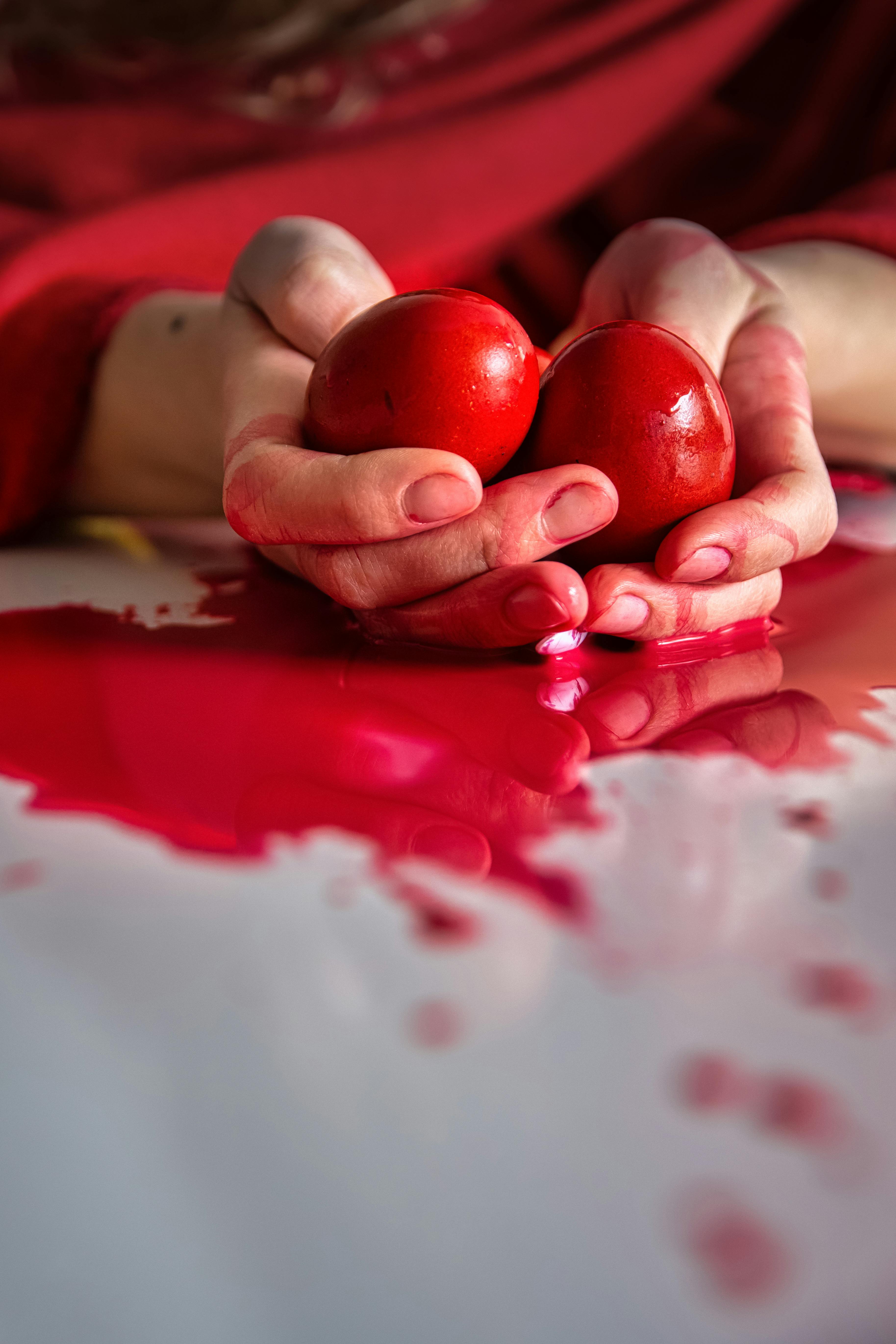 Існує також давня легенда, пов’язана з традицією фарбування яєць у червоний колір. За переказами, Марія Магдалина принесла римському імператору Тиберію яйце як символ Воскресіння і сказала: «Христос воскрес!». На що той відповів, що це так само неможливо, як і те, що яйце стане червоним — і в ту ж мить воно змінило колір. Саме тому червоний став одним із найпоширеніших великодніх кольорів.