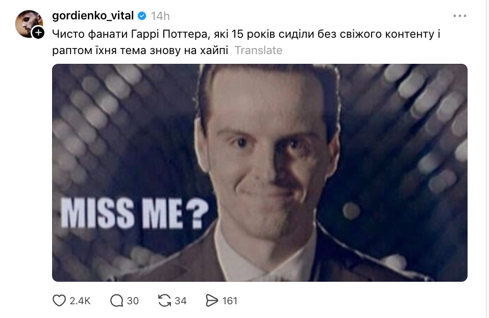 Я все розумію: Гаррі Поттер вас так зачарував, що моя стрічка вже виглядає як філіал Гоґвортсу. Але давайте вже дамо Снейпу трохи видихнути… Бо ще кілька постів, і він реально образиться, згорне мантію, скаже - «все, я у відпустку».