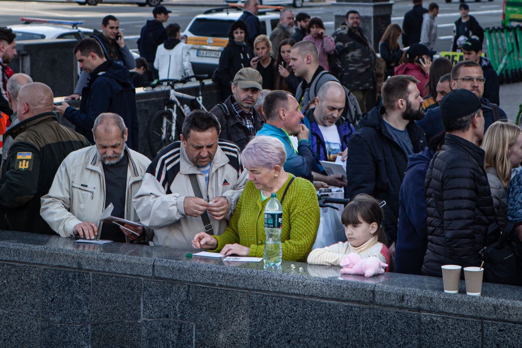 Черги як за дефіцитом. У день виходу марки, а особливо після новини про затоплення крейсера, біля Головпоштамту у Києві вишикувалися черги, яких пошта не бачила десятиліттями. Люди стояли по 6–8 годин, записували номери на руках, а онлайн-магазин Укрпошти «ліг» після 5 мільйонів одночасних запитів із усього світу.