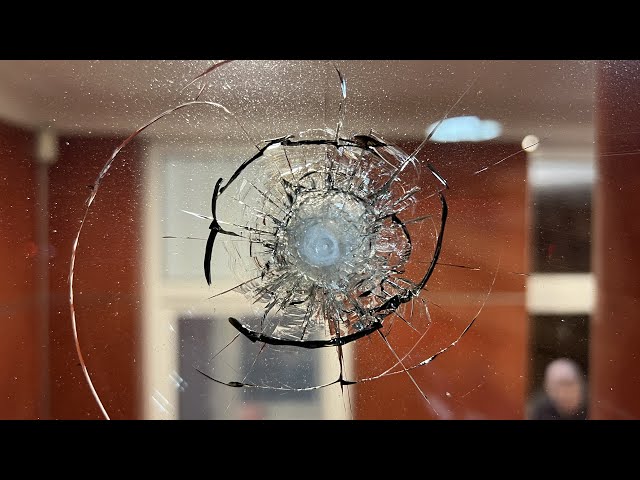 На опублікованому ролику журналіст демонструє отвір у вікні центрального входу до офісу. За його словами, злочин буде розкритий, оскільки в офісі скрізь встановлені камери відеоспостереження.