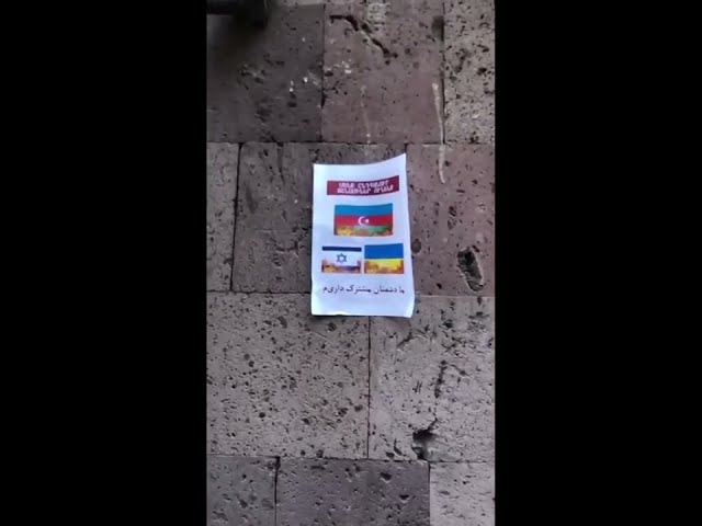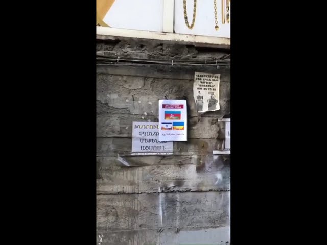 У самому серці вірменської столиці, поблизу Площі Республіки на житлових та адміністративних будівлях з’явилися провокативні листівки з закликом до міжнародної агресії. На листівках зображено палаючі прапори трьох держав: України, Азербайджану та Ізраїлю і розміщено напис “У нас спільні вороги”. Про це пише політичний оглядач Світлана Кушнір на Цензор.