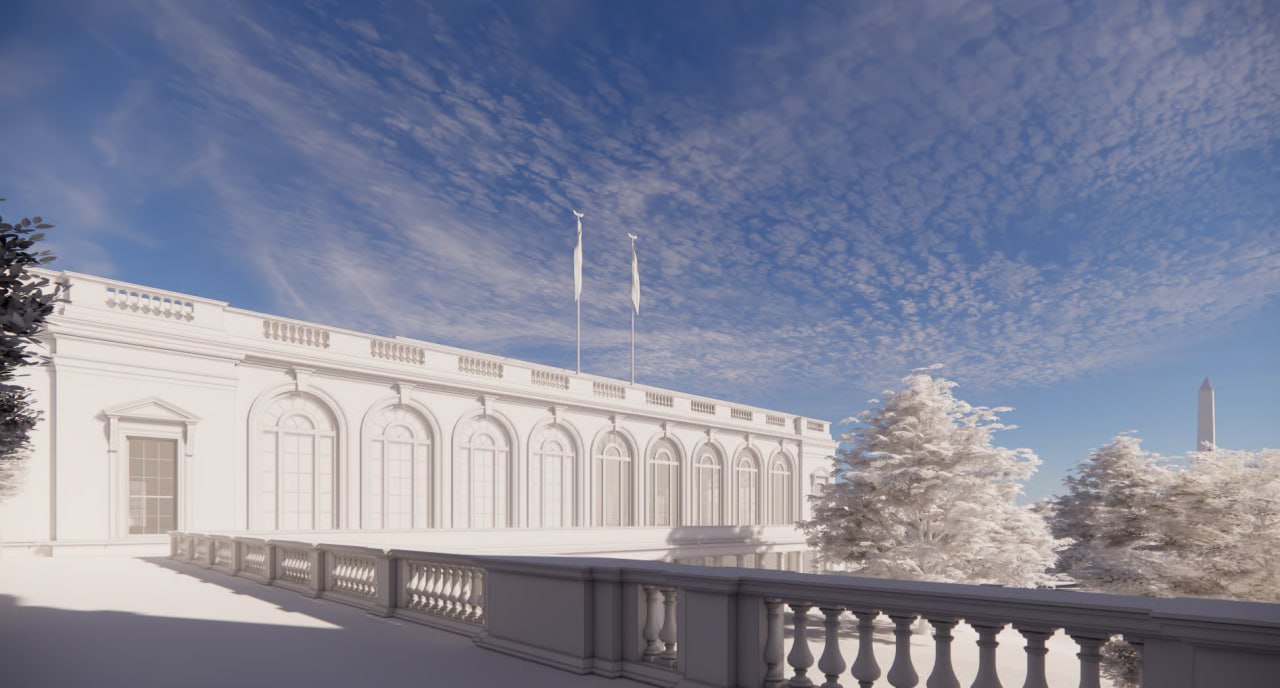 Зовнішнє оформлення нового приміщення в Білому домі було придумано в архітекторському бюро McCrery Architects, а очолює проєктну групу особисто Джеймс К. МакКрері II - голова бюро і великий аматор неокласицизму, а також друг Трампа. Взагалі фірма спеціалізується на релігійній архітектурі: до її портфоліо входять собори в Теннессі, Північній Кароліні та Техасі, монастир кармелітів у Вайомінгу. Справді, чому б саме цій компанії не збудувати бальний зал в офіційній резиденції президентів США?