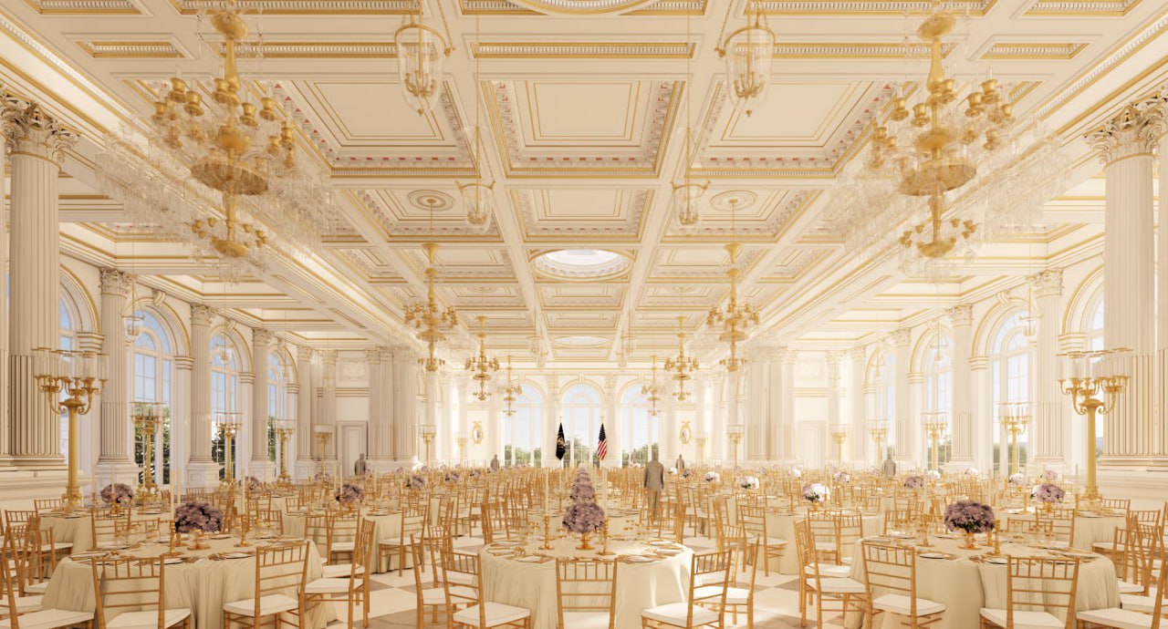 Пресслужба Білого дому заявляє: «Президент Дональд Трамп та команда беруть на себе зобов’язання вирішити проблему, з якою стикаються адміністрації вже 150 років». Пафосно, дуже пафосно, як і все, чого торкається президент Дональд Трамп. Вже відомо, що зал буде побудований в його улюбленій стилістиці «дорого-багато», у золотистих кольорах, а також оснащений куленепробивним склом. Сам Трамп називає майбутній бальний зал подарунком країні та символом американської величі.