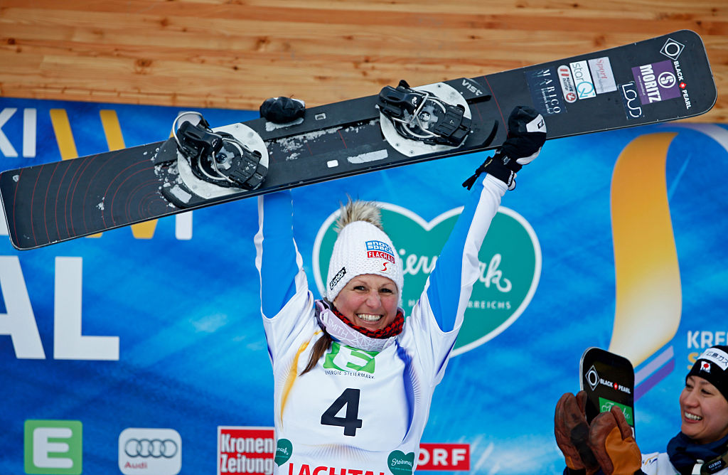 Австрійка Клаудіа Ріглер у свої 52 роки лихо впоралася зі сноубордом. Фото: Foto Olimpik/NurPhoto via Getty Images