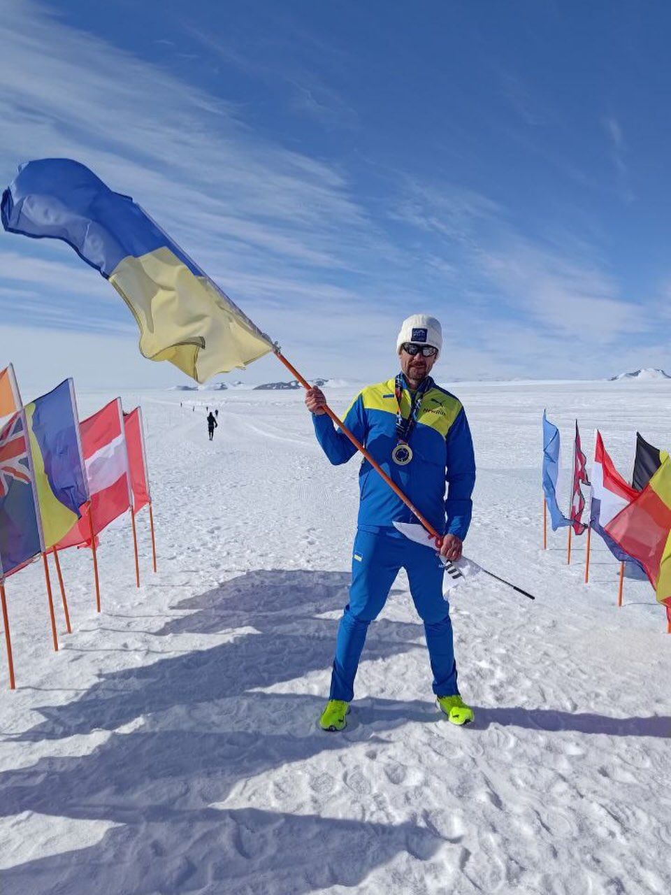 В Антарктиді було не дуже холодно, але заважав бігти зустрічний вітер. Фото: інстаграм Максим Кривенко
