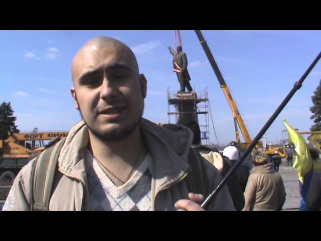 Демонтаж не обошелся без некоторых технических трудностей. Трос, которым пытаются отделить фигуру Ленина от постамента, оборвался. На его замену ушло несколько минут.