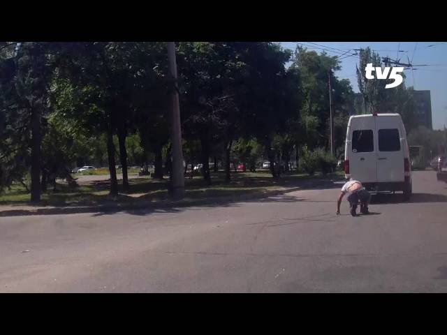 В Запорожье неадекватный мужчина пытался покататься на троллейбусе, но не удержался и упал. А сзади его дважды переехала маршрутка. Инцидент произошел около площади Профсоюзов. Видео опубликовал местный телеканал "ТВ-5".